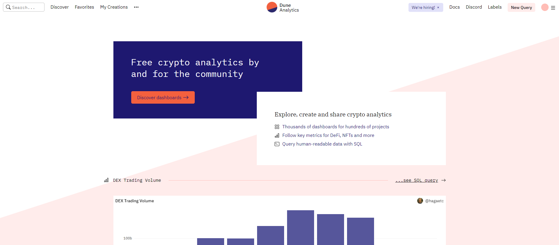 Dune Analytics is a SaaS (Software as a Service) that enables users to query, build and share dashboards of blockchain data.