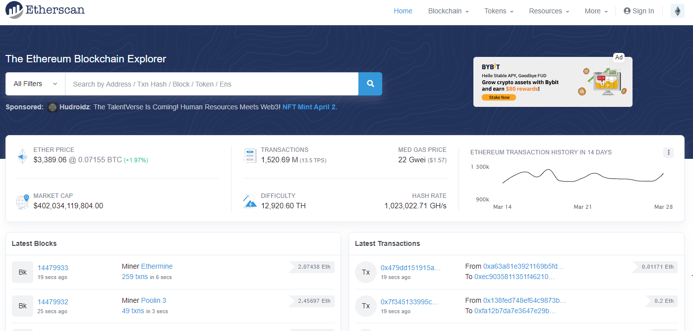 Etherscan is a blockchain explorer tool for the Ethereum blockchain.